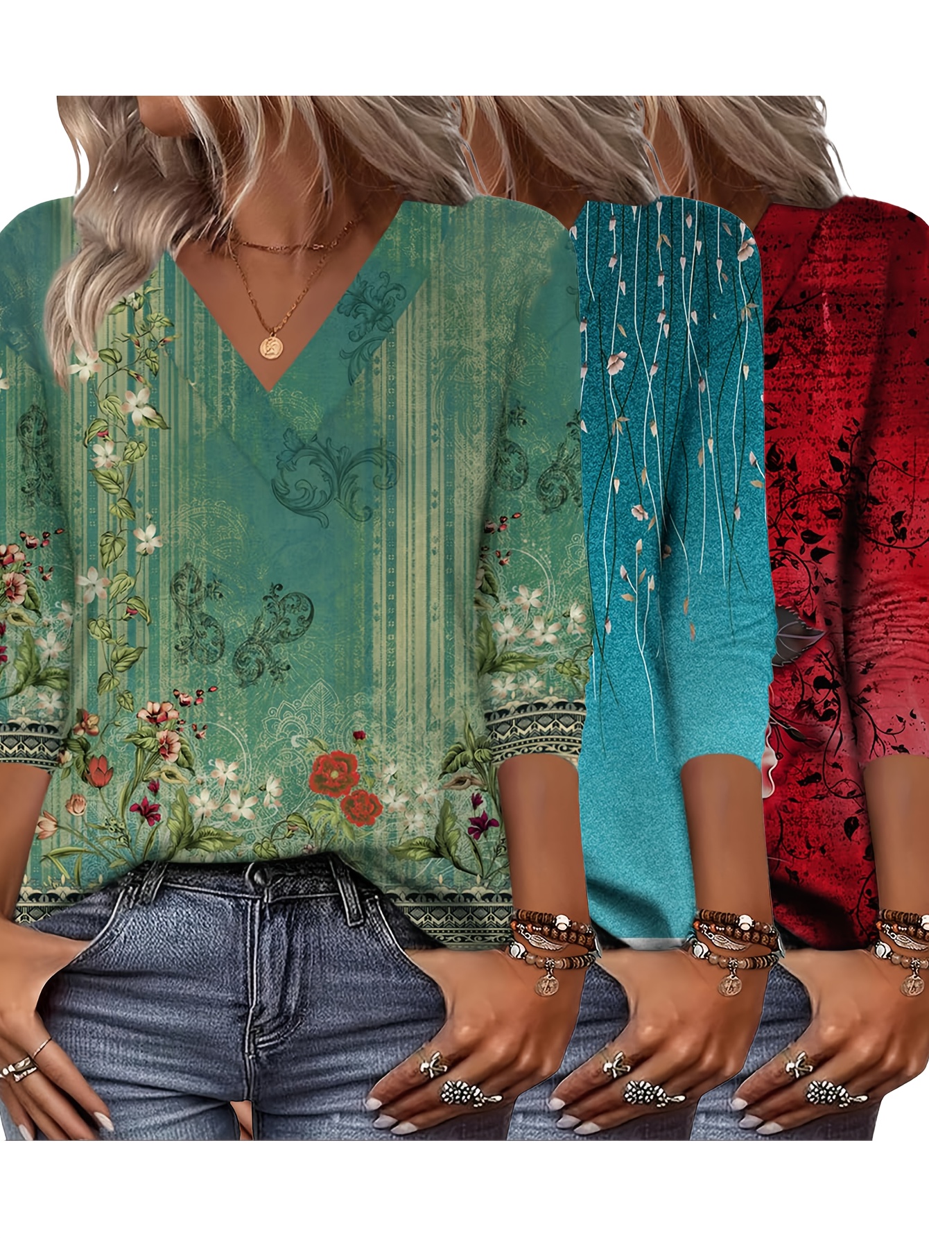 Fashionable Women’S Color V-Neck Short-Sleeved T-Shirt – Comfortable Fabric, Machine Washable, Suitable for Daily Leisure, Suitable for All Four Seasons – Three-Piece Set
