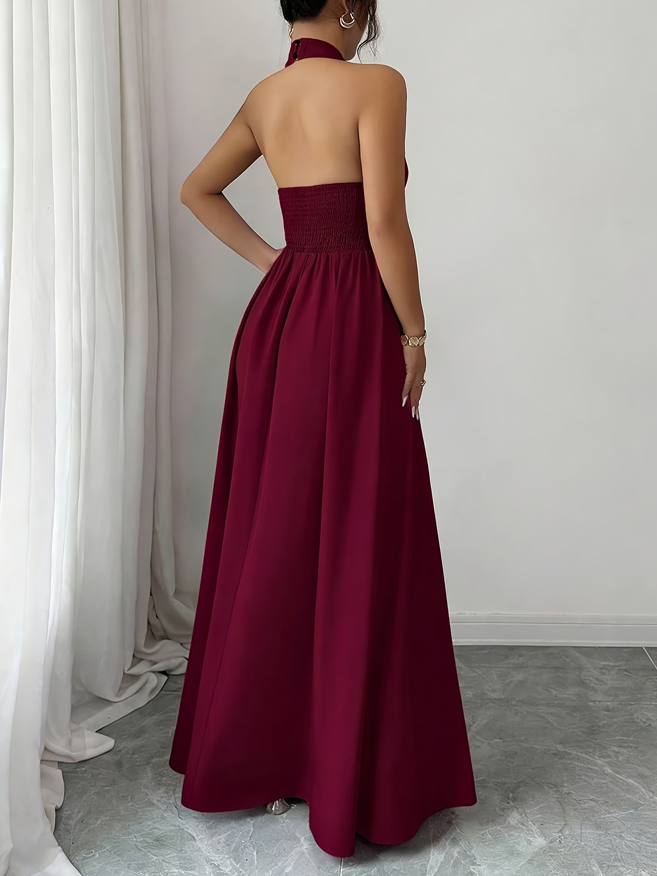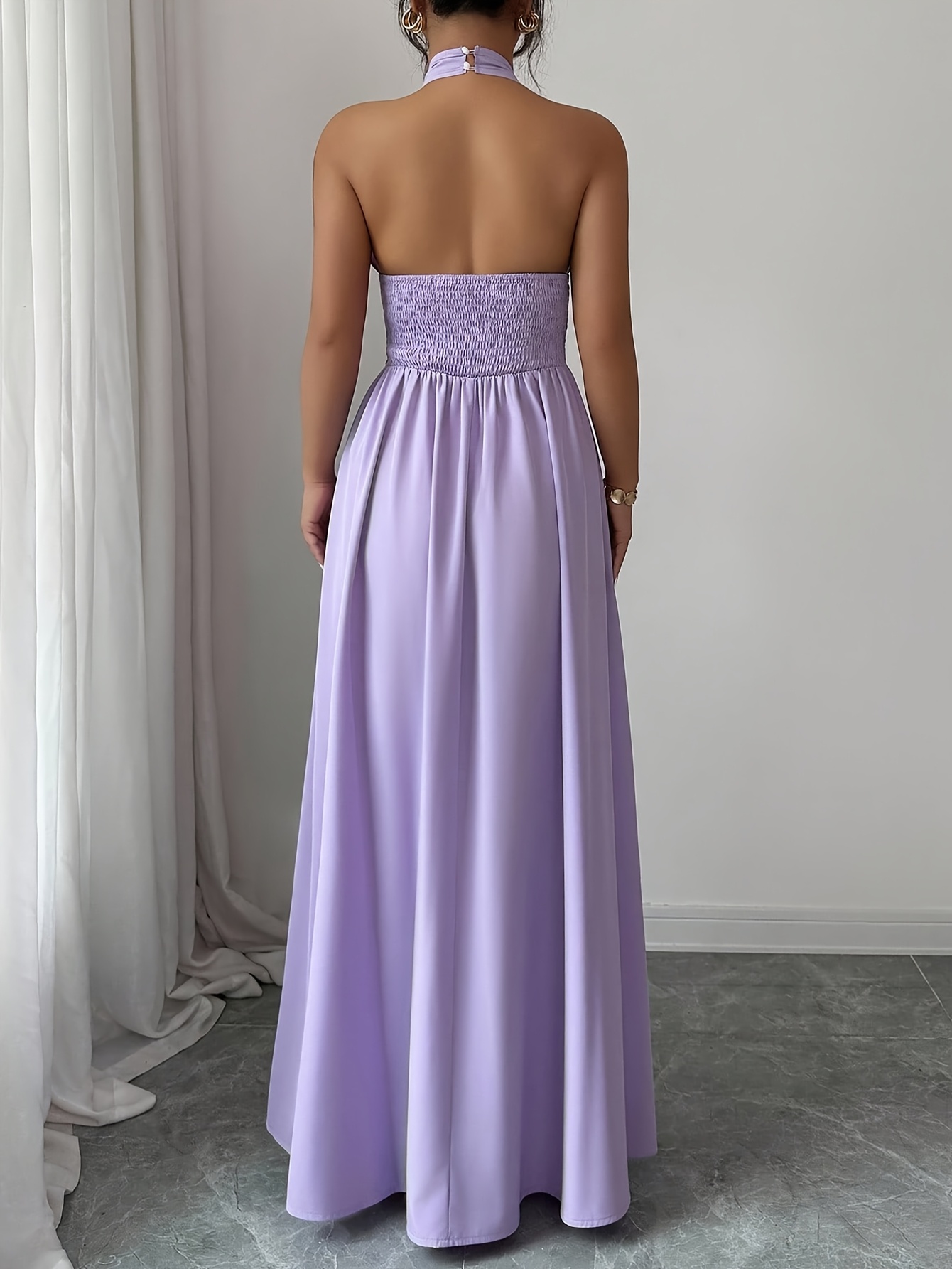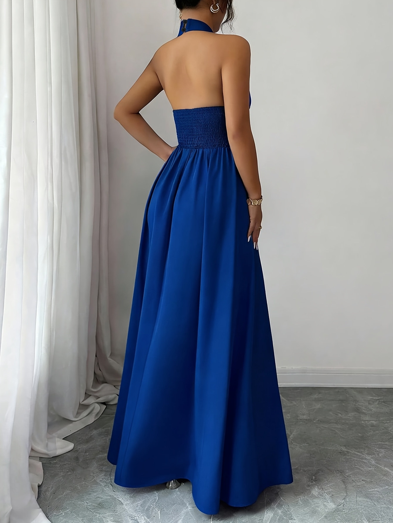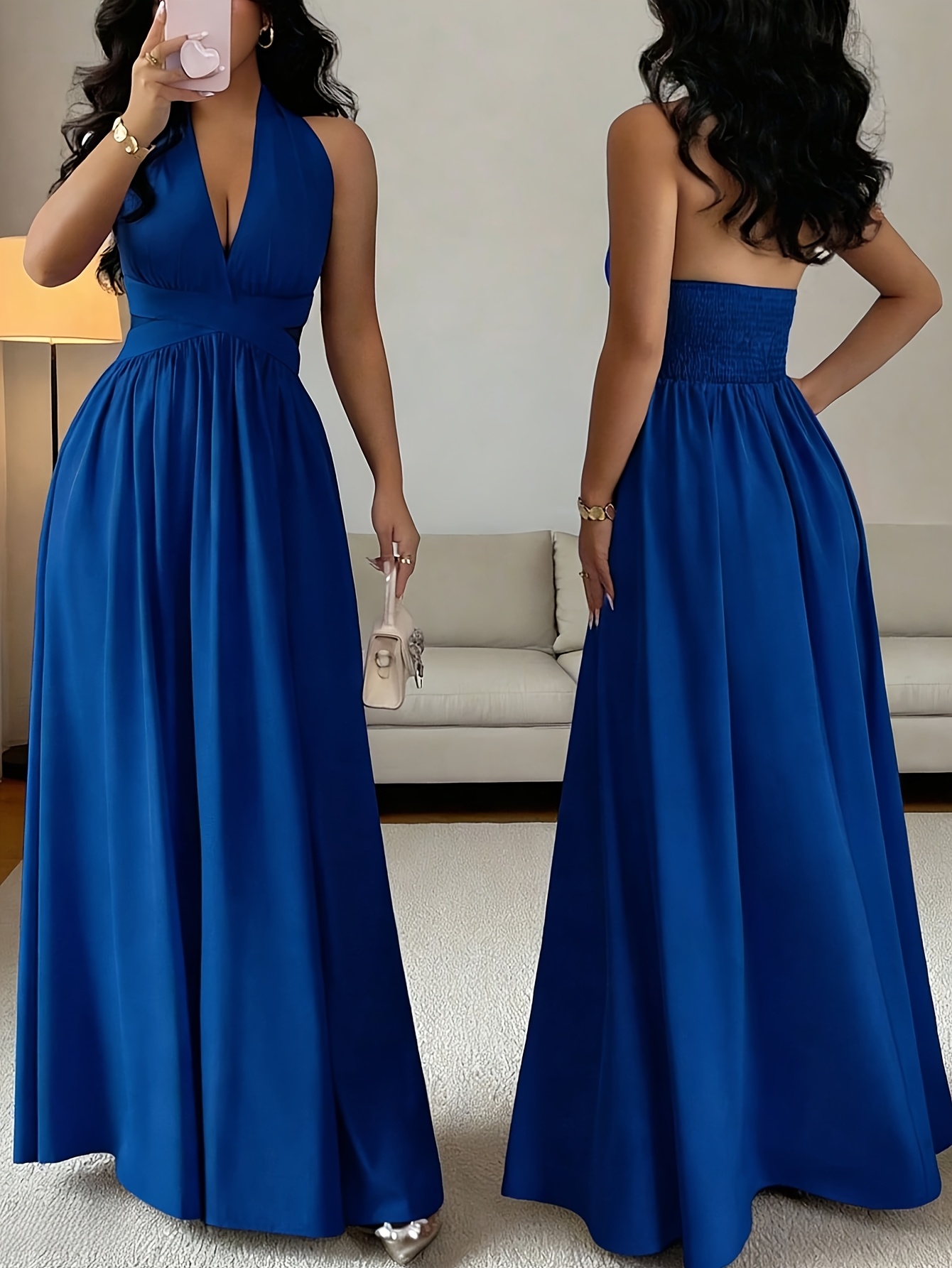 Be the first to review “Elegant Sleeveless Dress | Women’S Long Halter Neck Tunic With Frill Detail, Solid Color For Summer” Cancel reply