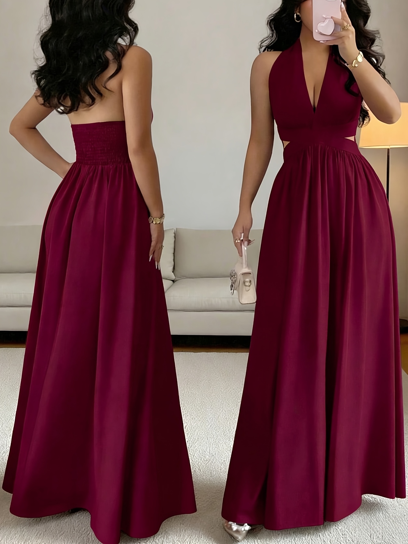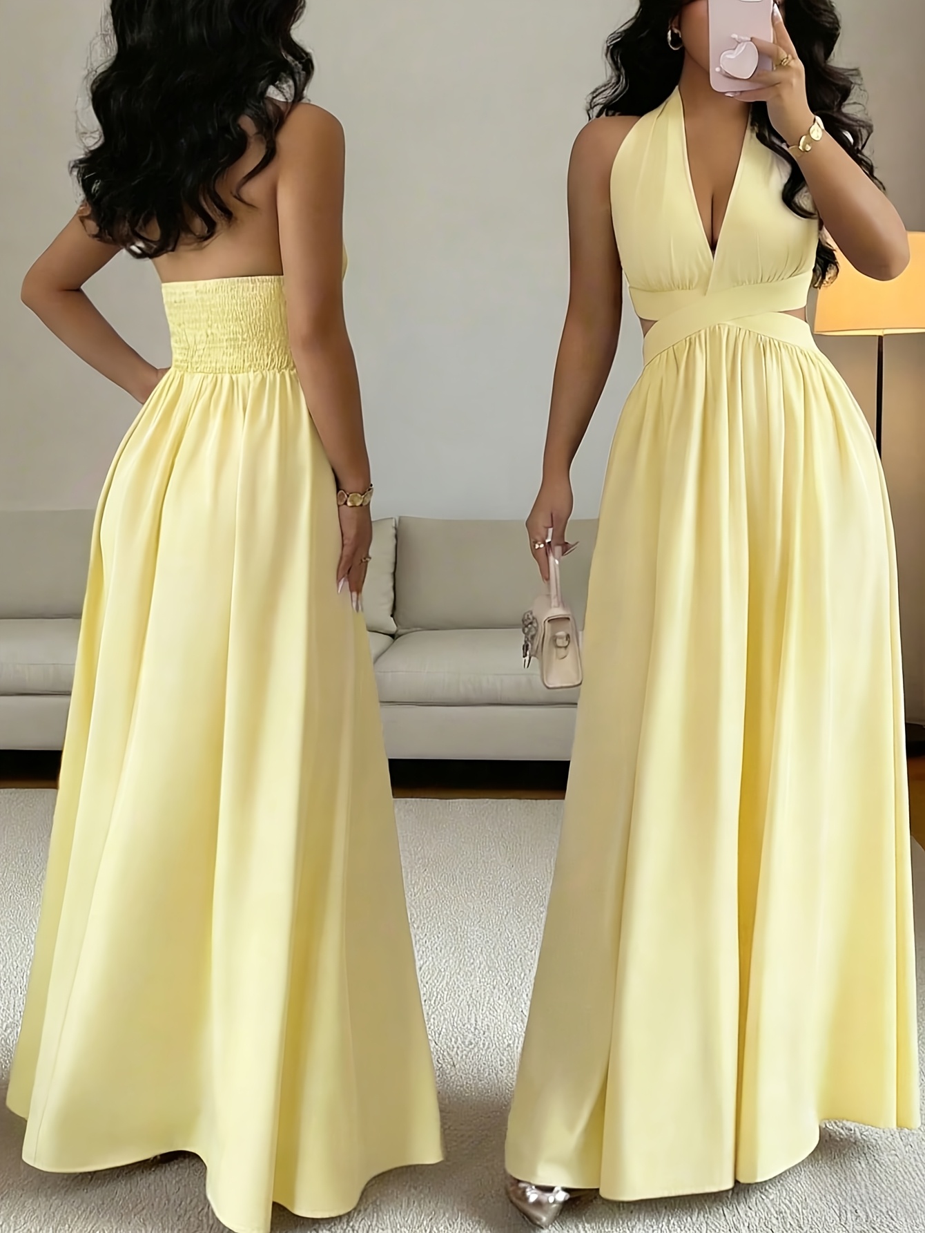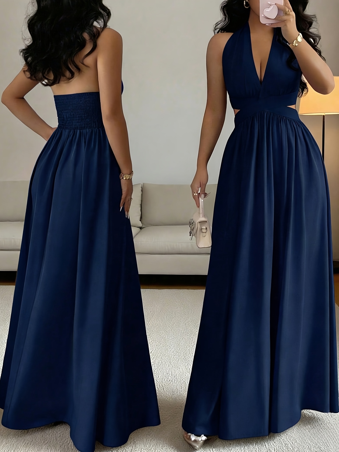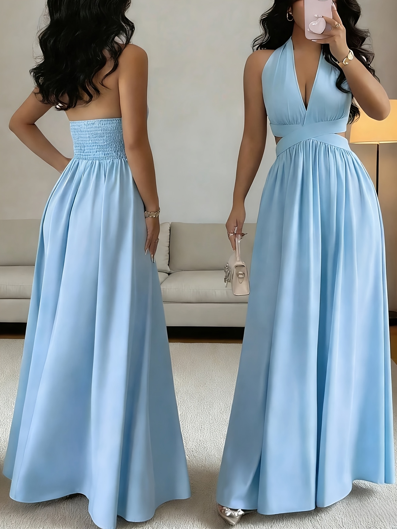 Be the first to review “Elegant Sleeveless Dress | Women’S Long Halter Neck Tunic With Frill Detail, Solid Color For Summer” Cancel reply