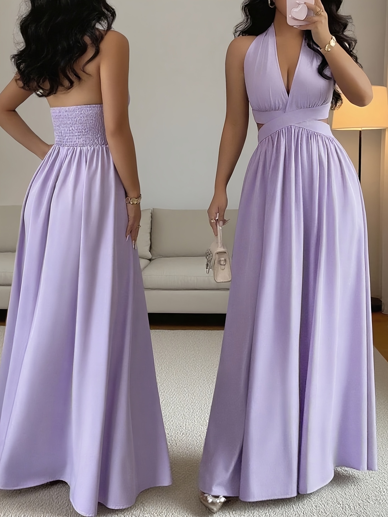 Home Women's Dresses Elegant Sleeveless Dress | Women’S Long Halter Neck Tunic With Frill Detail, Solid Color For Summer