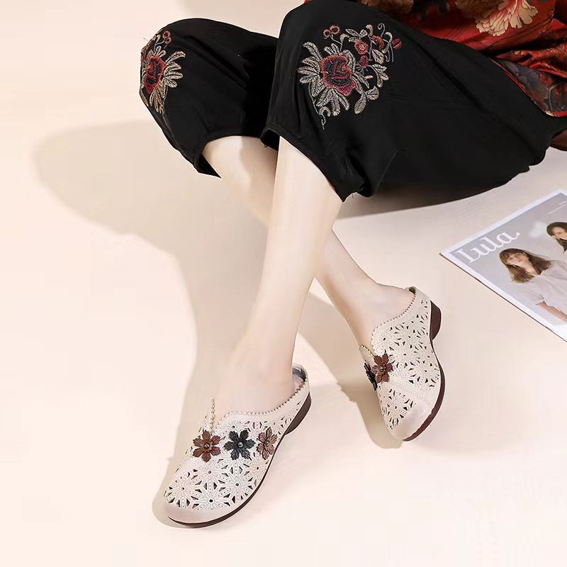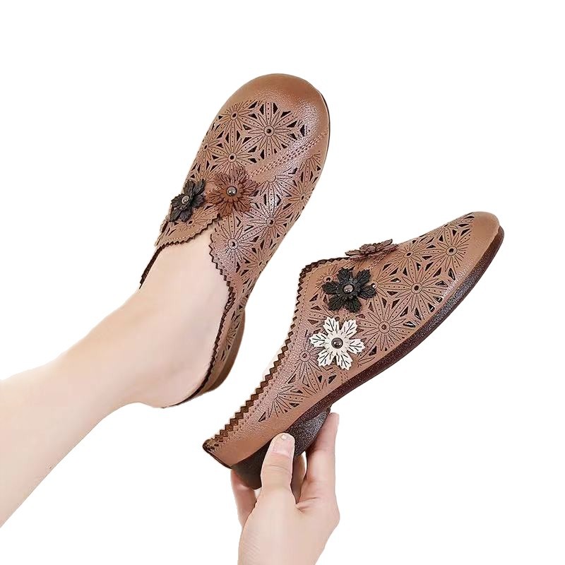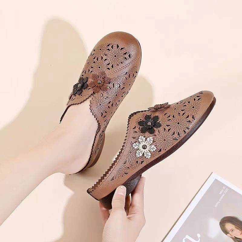 Lightweight and Versatile Outdoor Sandals, Beach Slippers, Fashionable Hollow Breathable Soft-soled Slippers for Middle-aged and Elderly Mothers, Women Shoes