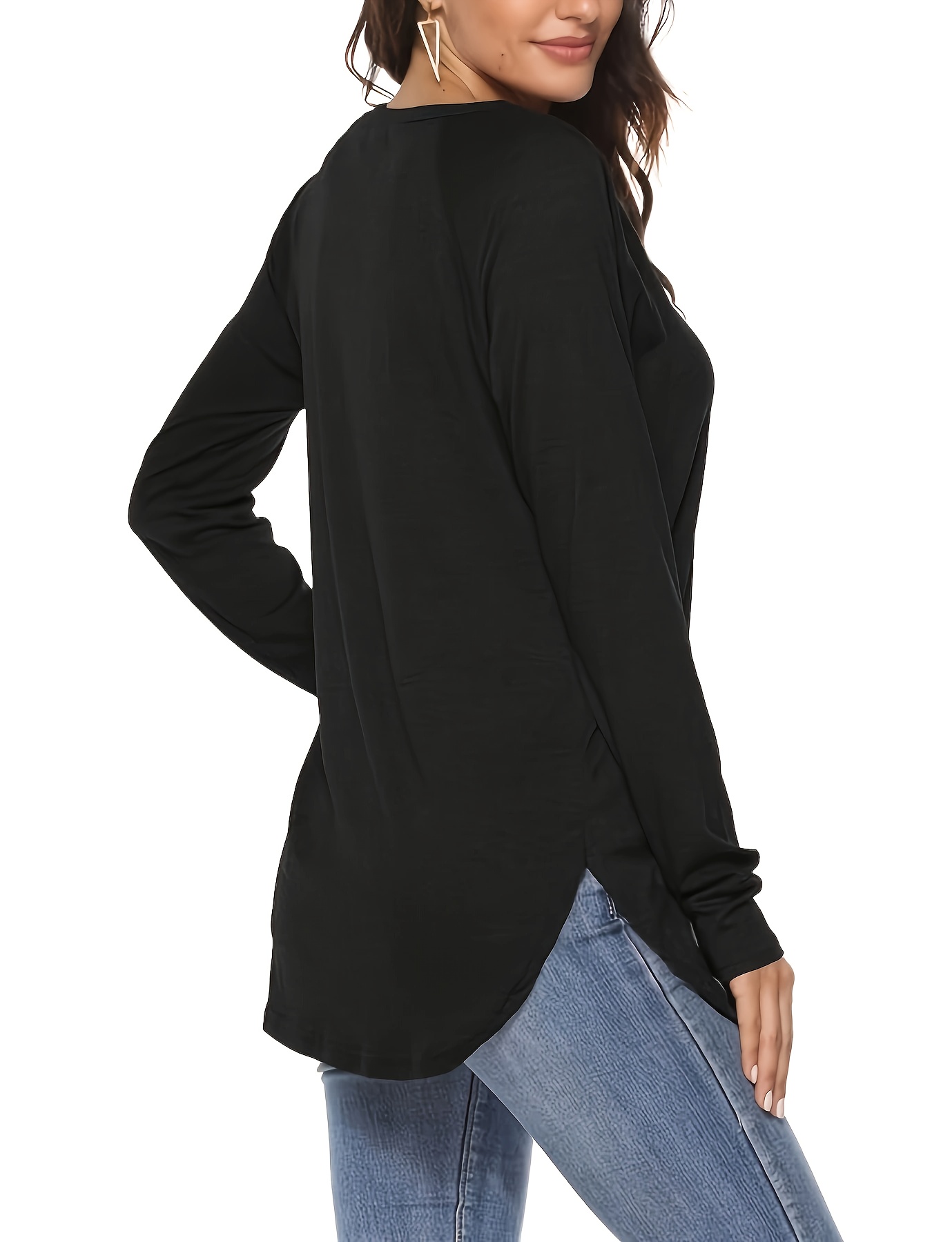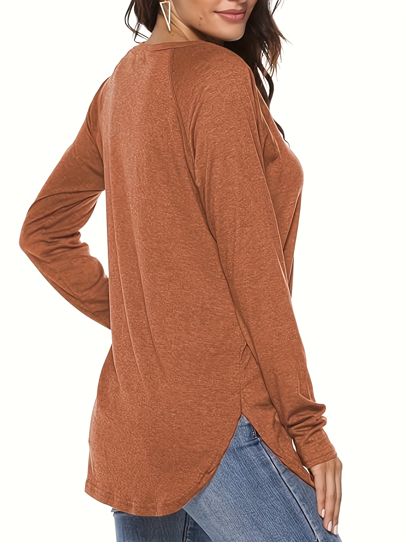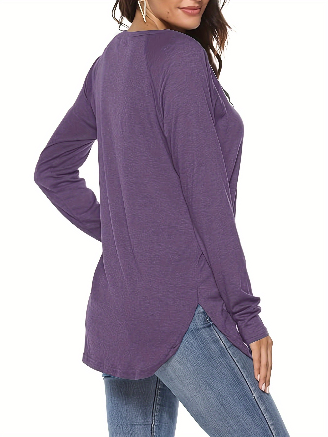 ‘ 4pcs V-Neck Long Sleeve T-Shirts – Solid Color Casual Layering with Medium-Stretch Fabric, – Basic Blouses (Machine Washable) – 4-Shirt Pack Purchase Value for Casual Attire & Wardrobe