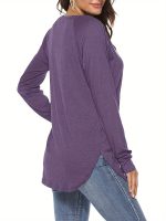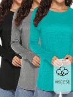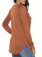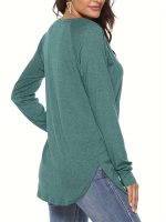 Targeted Circle – 3-Pack Solid Color Crew Neck 3u002F4 Sleeve, Women’S Fashion Springu002FSummer New Women’S Clothing, Casual Loose Fit Top, Button-Up Design, for Daily Commute And Dates, Versatile Top, Street Style Casual Outing