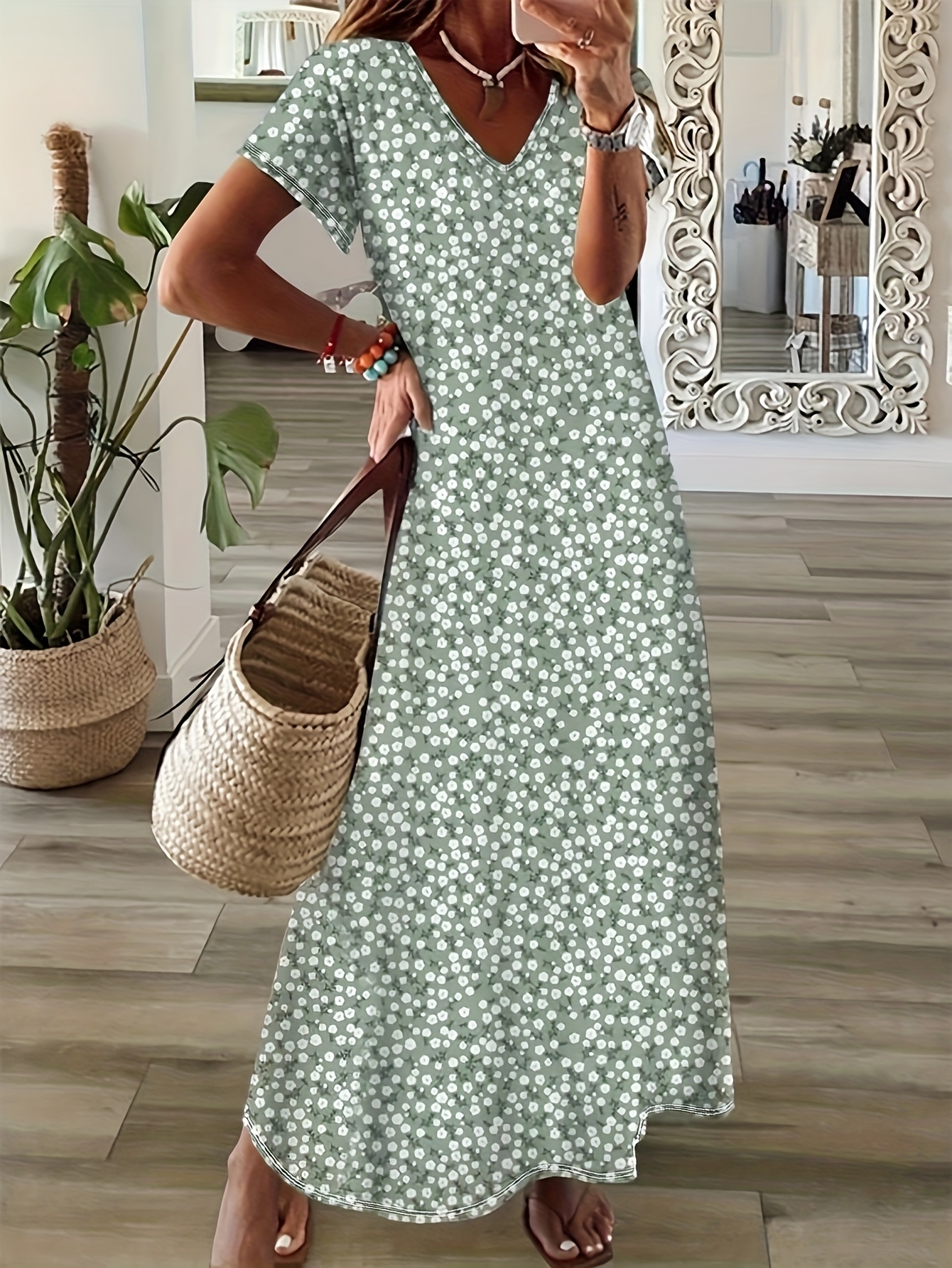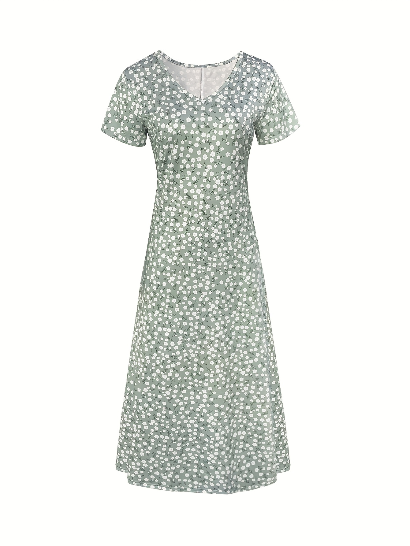 Home Women's Dresses Spring, Summer, Autumn Small Floral Holiday V-neck Women’s Thin Elegant Long Dress