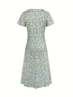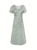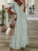 Spring, Summer, Autumn Small Floral Holiday V-neck Women’s Thin Elegant Long Dress
