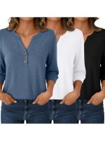 Home Women's T-Shirt Three-Piece Women’S 3u002F4 Sleeve Henley Shirt with a V-Neck, Featuring Button Details for an Elegant And Casual Loose Fit, Perfect for Spring, Summer, And Autumn