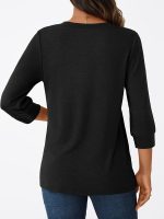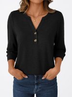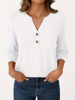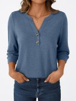 Three-Piece Women’S 3u002F4 Sleeve Henley Shirt with a V-Neck, Featuring Button Details for an Elegant And Casual Loose Fit, Perfect for Spring, Summer, And Autumn