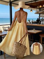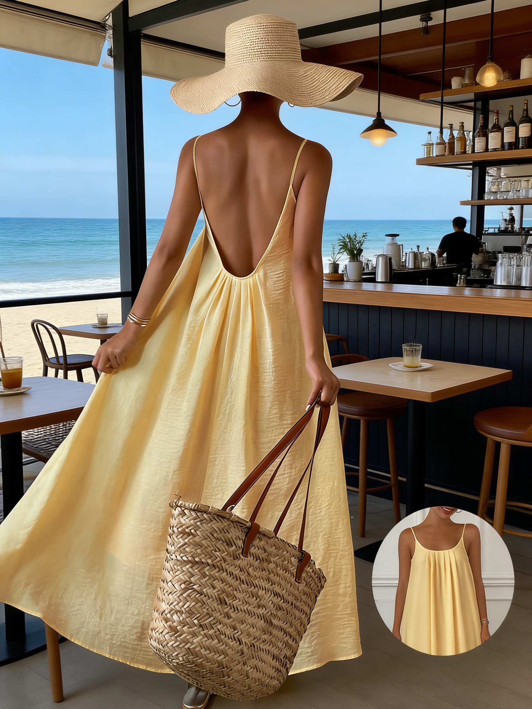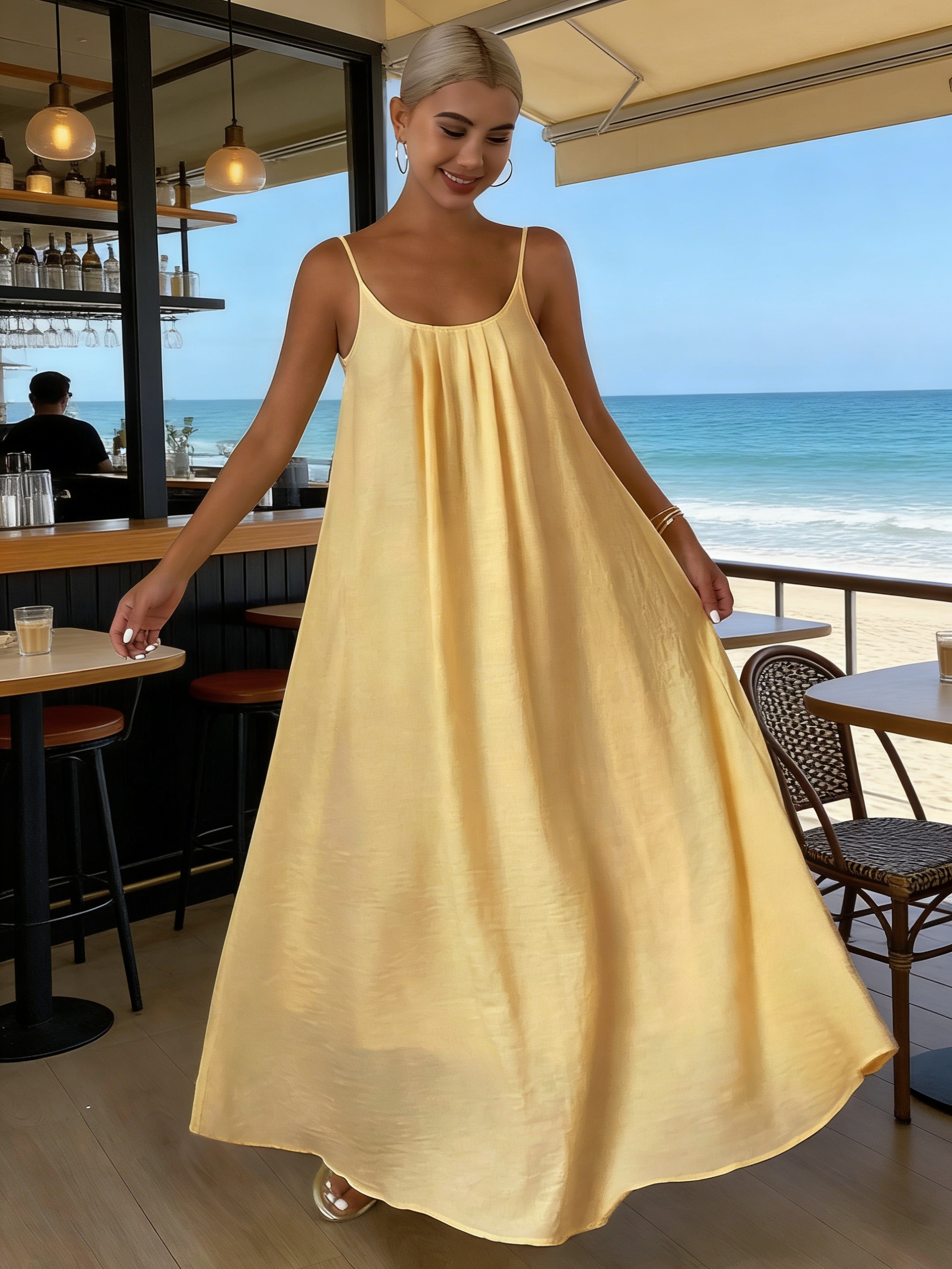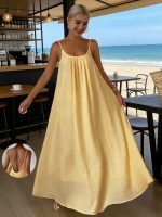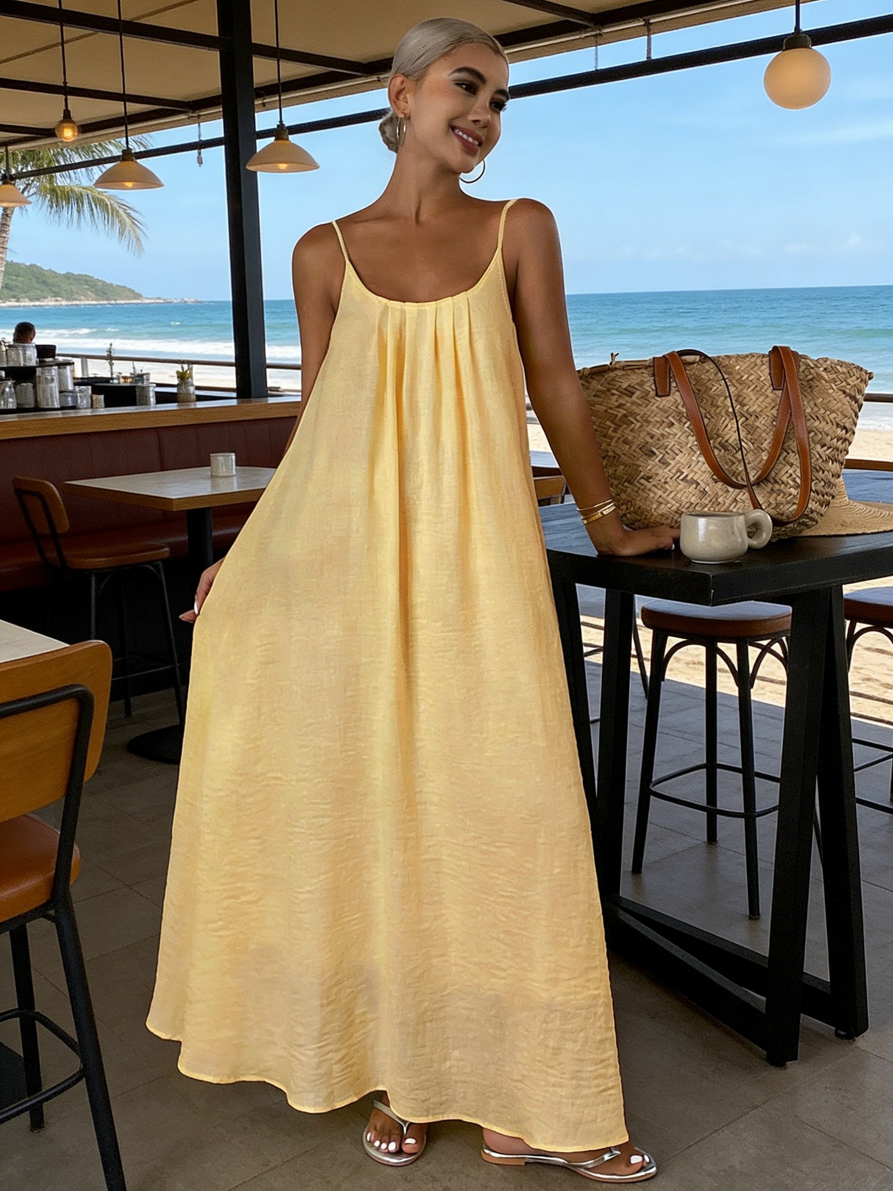 Vacation-style Sexy Long Dress with Spaghetti Straps, Comfortable and Loose-fitting