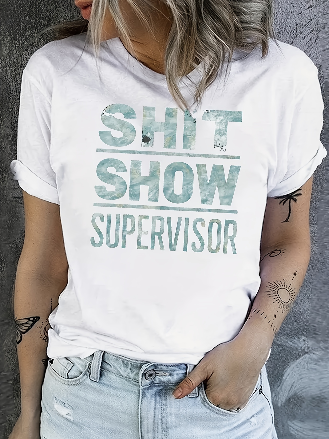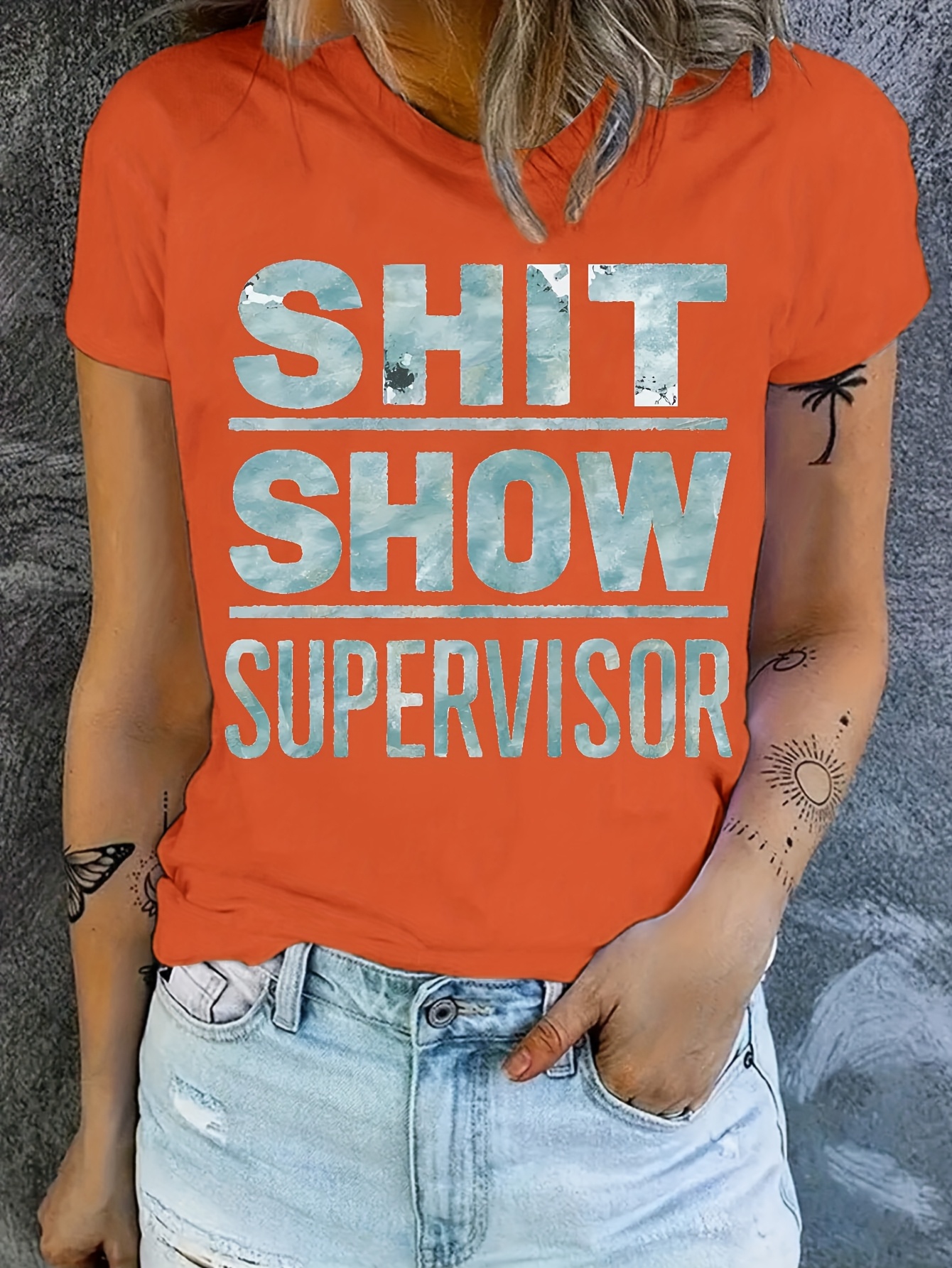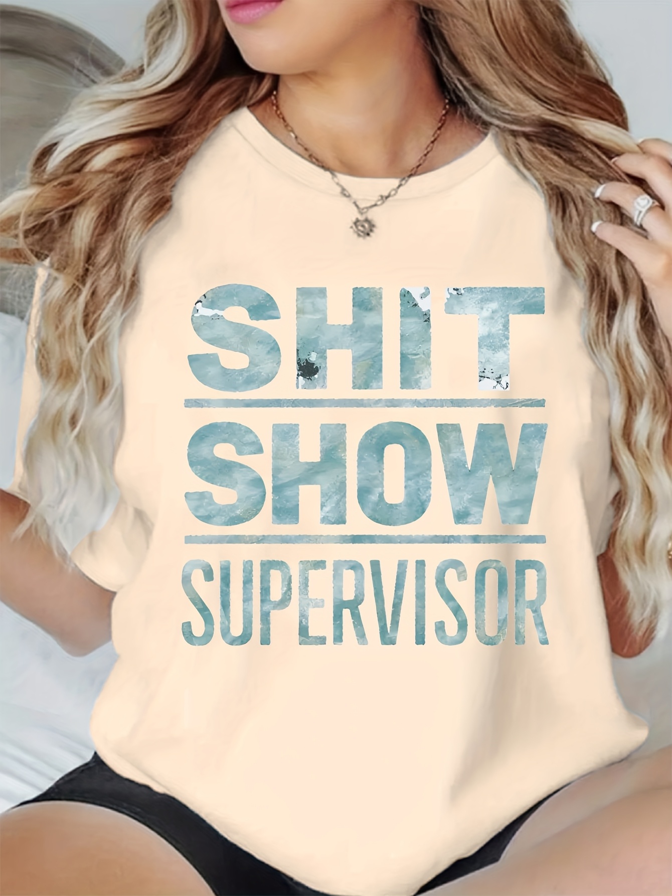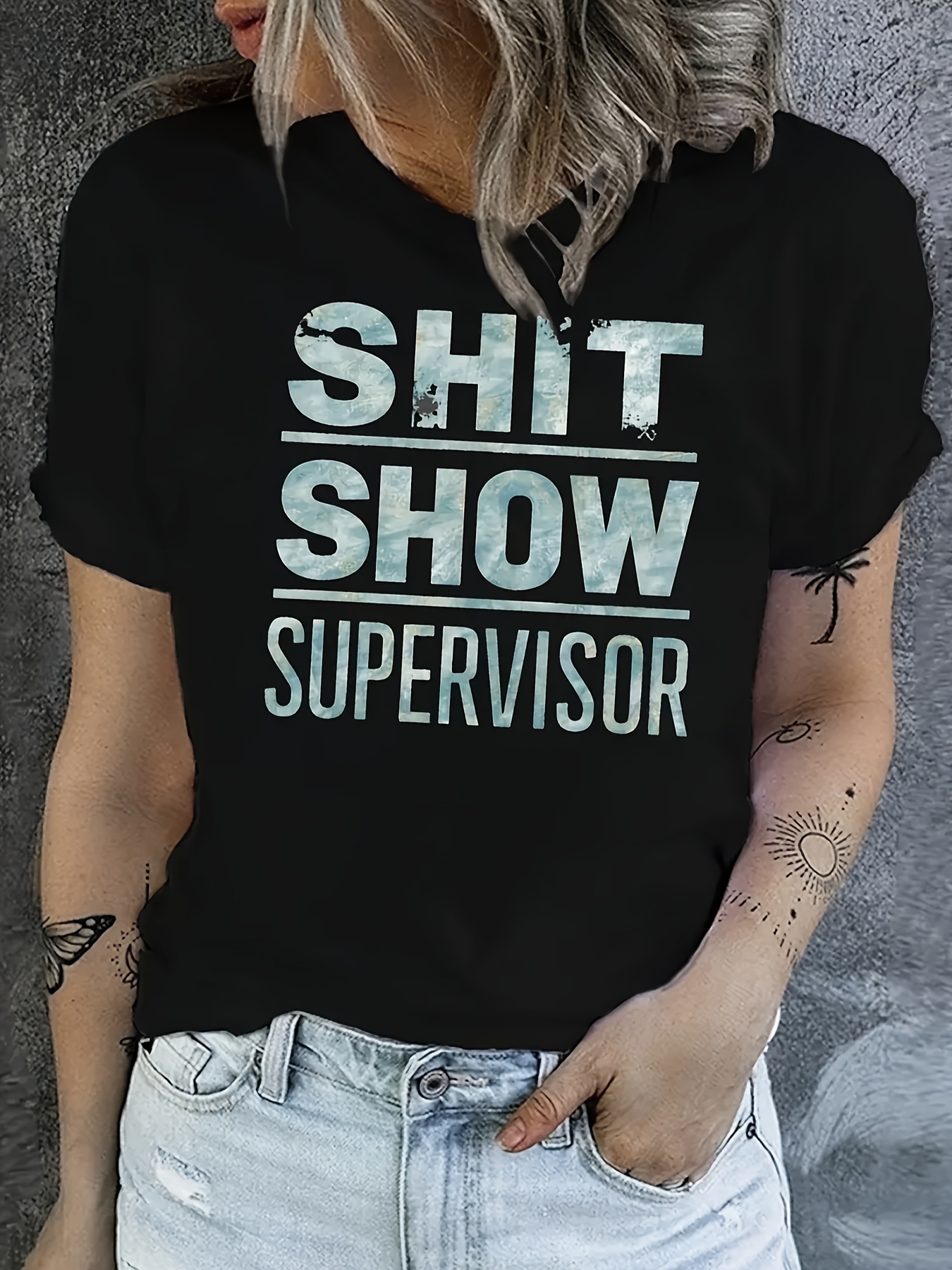 Home Women's T-Shirt Women’S Chic Letter-printed T-shirt Comfortable Fashion Casual Short-sleeved Round Neck Everyday Wear Top